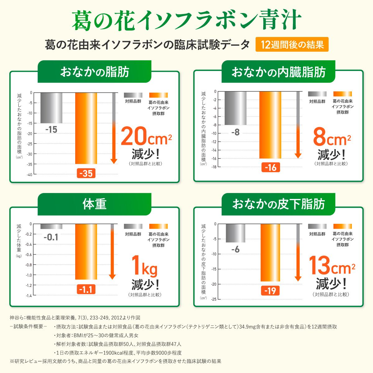 その恵まれた自然環境で育った葛の花から抽出されたイソフラボンが、この青汁に凝縮されています。